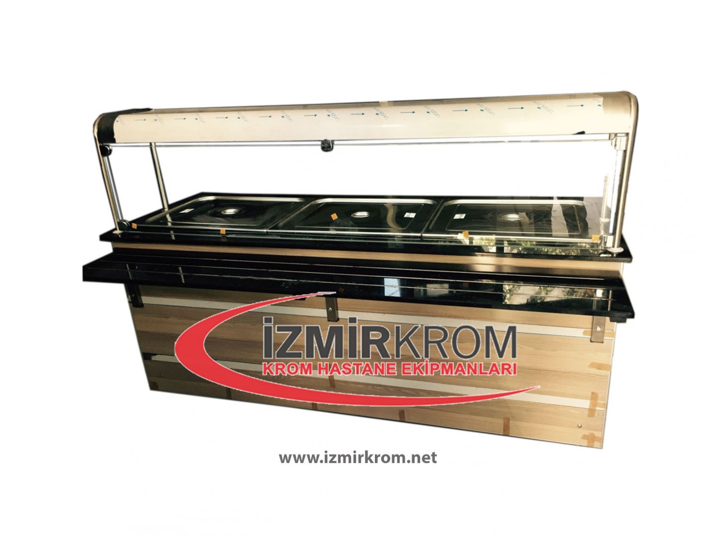 Benmari Kaydırma Stantlı Servis Tezgahı Model : BENMARI-02 Elektrikli - gazlı yapılabilmektedir. Paslanmaz çelik gövde Tepsiler Tepsi ölçüsü..30x31x6 Çorba...
